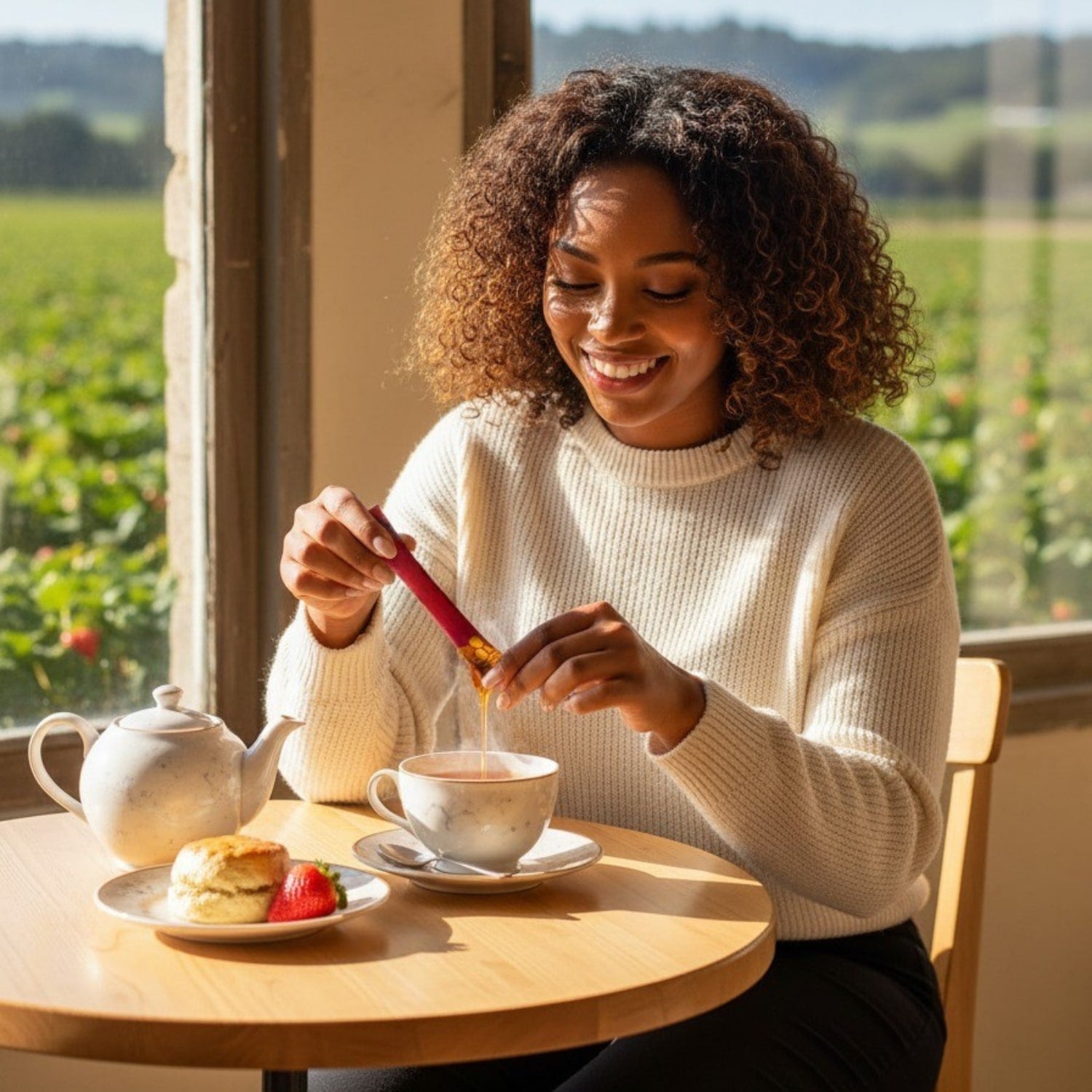 A silky, sweet blend of wildflower honey kissed with fresh strawberry - smooth, floral, and slightly tart.