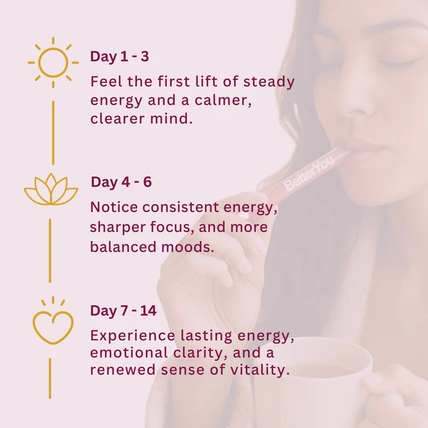Many women notice shifts within the first 1–2 weeks - steadier energy, softer moods, and a spark of desire returning. Deeper hormonal balance and full benefits often build over 4–6 weeks of consistent use.